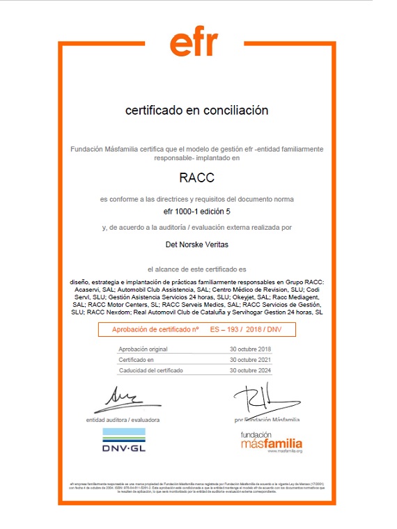 Certificado que reconoce la gestión del talento humano; el compromiso con la conciliación entre los ámbitos laboral, familiar y personal de los trabajadores; y el apoyo a la igualdad de oportunidades.